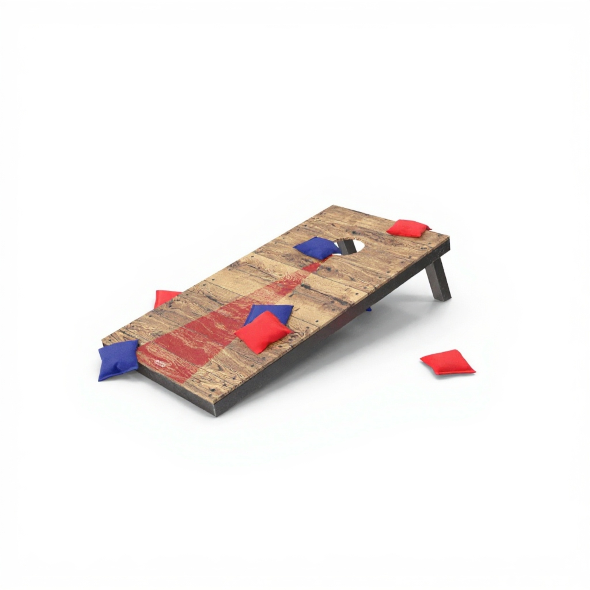 Un jeu de pétanque à l’américaine. Jetez les sacs dans le trou pour emporter un maximum de points !