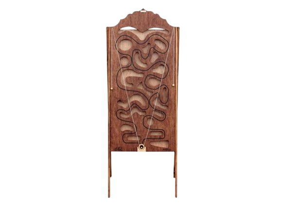 Suivez le chemin avec la bille à l’aide des ficelles pour faire le tour de la planche, mais attention a ne pas la faire tomber dans un trou car elle retombe au départ !